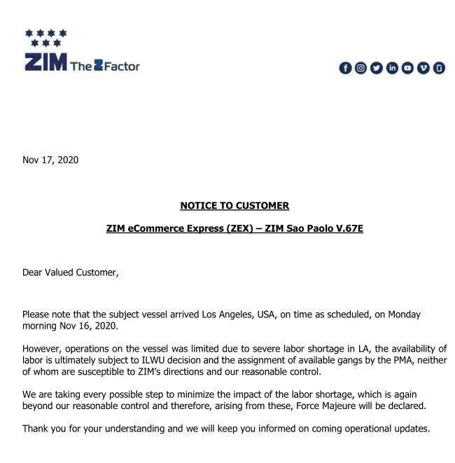 最近,以星、美森、长荣均通知:美国洛杉矶LA码头和长滩LB港码头由于疫情和劳动力严重短缺,造成的航行时间加长及塞港导致的提货时效异常缓慢的程度超乎各位的想象,请做好心理准备。