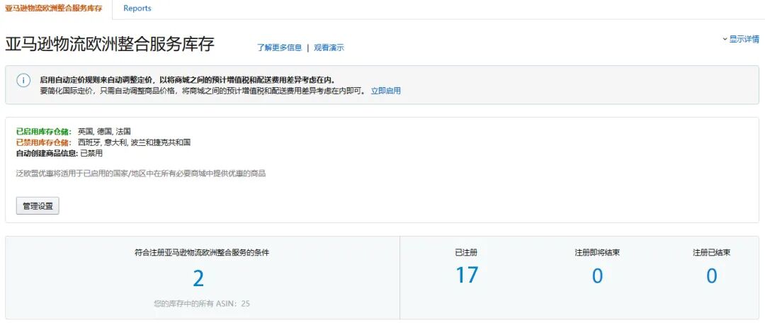 什么是亚马逊欧洲物流整合服务(Pan-EU)? 亚马逊物流欧洲物流整合服务(Pan-EU)是亚马逊物流(FBA)在欧洲的跨地区解决方案之一,当我们在欧洲相应站点发布FBA商品后,选择好存放库存的国家/地区,之后只需要将商品运送到一个欧洲当地亚马逊运营中心,亚马逊会根据预期的消费者需求,自动调配和储存卖家们的商品,这一过程我们是不需要支付额外费用的。 当有消费者购买我们的商品后,亚马逊将对此订单进行分拣,打包,并将商品配送到当地/境外买家手中。 如果消费者是在你存放库存的国家/地区时,亚马逊会以最快的速度将订购的商品送达买家手中,并享受最低的当地物流配送费。 若消费者不是在你存放库存的国家/地区时,亚马逊将会把订购的商品跨地区运输到买家手中,但运输时间可能会比较长,物流配送费也会比较贵,但比起EFN还是比较便宜的。 EFN是什么? 简单来说EFN和Pan-EU都属于欧洲库存共享模式,也就是欧洲站一个国家某个listing的货都可以通过这两种模式在另外一个市场上进行售卖,并且从母国进行发货给买家。但EFN的价格相对来说要比Pan-EU贵些。 ■ 注意事项 * 注意:选择Pan-EU物流服务时卖家们需要履行增值税义务,如果你在未履行增值税义务的国家也开通了此服务,那么亚马逊也有可能会往这个站点分配库存,若出现这样的情况,你又没有VAT税号,会直接导致账号被封掉。 * 另外从2020年12月28日起,Pen-EU将暂停跨英国与欧盟海关边境配送订单。 * 选择EFN物流服务时你可以把库存指定存放在欧洲的其中一个国家,当你把产品listing同步到各个国家,有消费者购买你的商品后,亚马逊就会从你存储的“母国“进行发货给买家,只要没有超过当地国家的年远程阈值上限是不需要履行增值税义务的,缺点就是跨地区配送的价格会比较贵。 * 关于Pan-EU和EFN的运费表,大家可以在公众号回复关键词“EFN/Pan-EU运费表“获取噢~ ■ 新版本Pan-EU如何注册? 如果你还尚未使用欧洲物流Pan-EU,只需要满足以下注册条件,将会自动注册(等英国脱欧后): Listing资格要求:至少有一个ASIN需要满足在亚马逊英国、德国、法国、意大利和西班牙站点都有在售商品,并且使用相同的亚马逊物流条形码FNSKU(如果这个ASIN并不是在上述5个站点中都存在的,则只需在ASIN存在的所有站点有在售商品即可)。 库存仓储要求:在两个及以上欧洲站点启用库存仓储(卖家已经注册增值税号的站点会自动启用库存仓储) 如果你没有被自动注册,则需要检查是否符合以上条件,并进行完善。 卖家可以登录卖家平台,点击“库存“-”亚马逊物流欧洲整合服务库存“页面(如下图)。查看已注册的ASIN详情。通过点击“已注册”按钮,可以查看已经注册成功的Pan-EU ASIN的状态。通过点击“符合注册亚马逊物流欧洲整合服务的条件”按钮,可以查看尚未注册成为Pan-EU ASIN的情况。 亚马逊物流欧洲整合服务变更对卖家有什么影响? 对现有Pan-EU卖家的影响 目前无法变更库存仓储国家 如果你在2020年9月30日之前已经开通使用Pan-EU,这就意味着目前已经在7国都启用了库存仓储。在2021年1月1日之前,你将暂时不能调整库存仓储国家/地区,后续情况以亚马逊进一步通知为准。 如果你是在2020年9月30日之后自动加入Pan-EU, 可以根据业务需求,手动在卖家平台启用更多的库存仓储国家,以享受Pan-EU的物流配送的优势,但是买家们需要承担相应的增值税注册和申报义务。 对欧洲配送网络(EFN)/多国库存(MCI)卖家的影响 如果卖家满足Pan-EU自动注册的条件,将自动加入Pan-EU。使用新版Pan-EU能够帮助你进一步减轻亚马逊配送成本。 此外,EFN卖家还可以借助 “体验亚马逊物流欧洲整合服务”限时促销计划,享受更低的配送费用。 在以下亚马逊欧洲站点(Amazon.co.uk、Amazon.de、Amazon.fr、Amazon.es 以及 Amazon.it)中创建符合条件的新商品,新商品可在最多三个月内享受本地配送费用。 详情可复制以下链接到卖家后台查看: https://sellercentral-europe.amazon.com/gc/fulfilment-by-amazon/try-pan-eu-promo