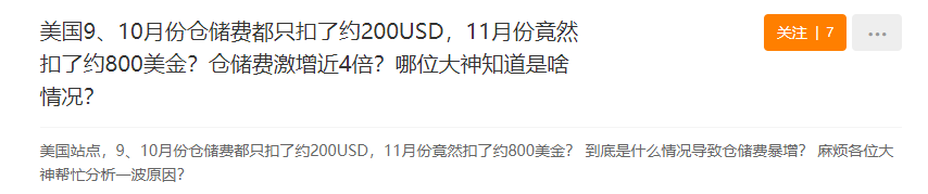 近日,有卖家在论坛反映:美国九十月份仓储费都只扣了200美金,11月份竟然扣了约800美金?仓储费激增4倍?