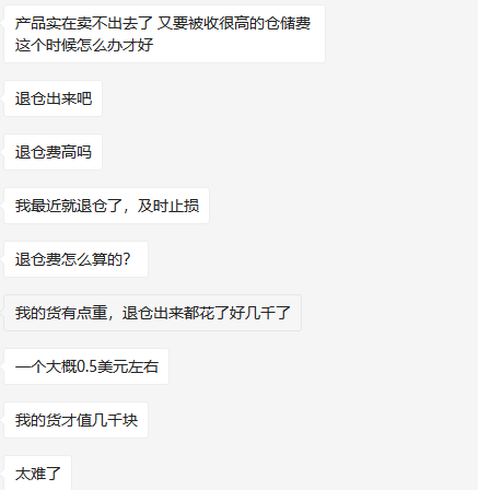 同样,在卖方通卖家交流群中,也有卖家求助:产品实在卖不出去了,又要被收很高的仓储费,这个时候怎么办才好?