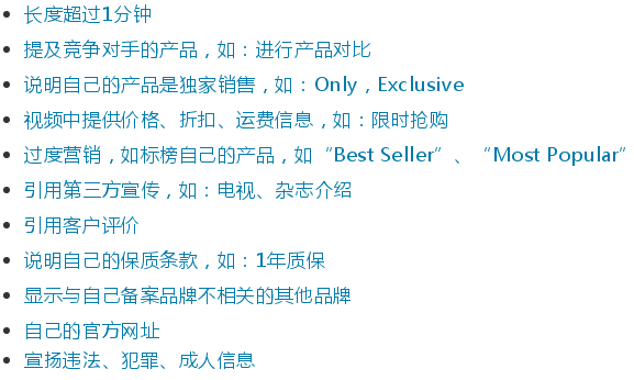 Amazon Requirements-视频不可以包含其他 ASIN 的 Review,非亚马逊的网址,不适当的内容,限时限量或是促销内容。
