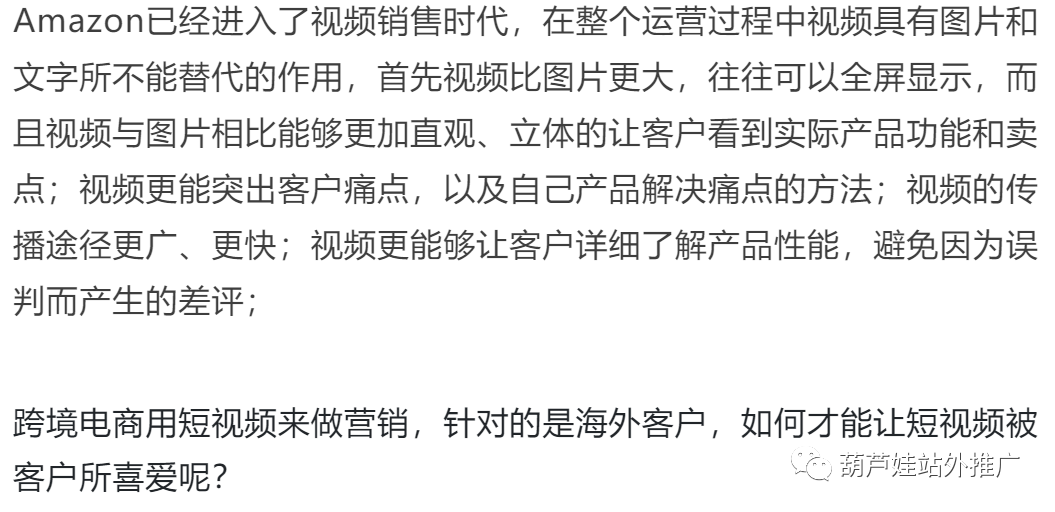 视频可以用来展示什么呢?可以展示产品生产流程;展示产品操作流程;展示产品性能测试;对比不同产品的优劣;展示产品应用场景等短视频其实还可用来展示产品很多方面的东西,比如产品品牌故事诉说、产品所包含的情感也可以用短视频来体现等等,卖家可以根据自己的需求结合创意制作各类短视频。