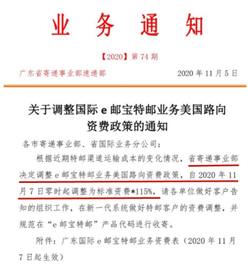 近期随着国外疫情的再度反弹以及旺季的到来,物流费用也是反反复复一直在上涨。昨日,有卖家收到了广东省寄递事业部速递部发来的一则《关于调整国际e邮宝特邮业务美国路向资费政策的通知》,通知内容如下: