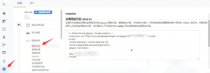 我们可以看到它会要求你安装一段代码在你每个网页的之间。