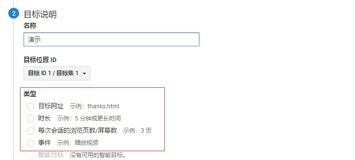 目标网址:如果你是做电商的,那么你可以把结账页面或者加入购物车页面输入,那么每当有人到达这两个页面,你的GA里面就可以统计到。