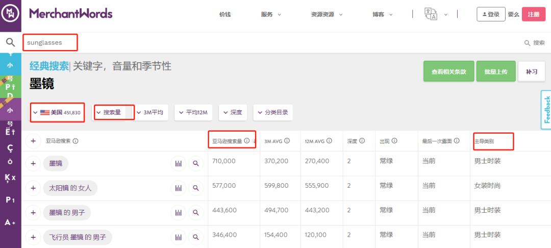 可见,关键词对卖家来说有多重要。 在亚马逊平台上,关键词相当于产品的身份识别器。可以理解成,当你把产品上传到亚马逊上时,因为系统不可能凭空给产品分类,所以,它会按照你输入的关键词来判断产品。也就是说,你输入的关键词就是你产品的身份。 那么,我们该如何准确地找到产品的关键词,从而更利于我们产品的上线呢? 有两种方式:免费方式和付费方式 但因为市面上的关键词工具有很多,这里大家可以作为参考,当然这也会是选品的一个灵感。 1、亚马逊搜索框 这是我们触手可及的寻找关键词的方式。亚马逊搜索框会根据大量的消费搜索行为推荐出产品关键词。 例如查找 desk ,在搜索框中输入后,你会看到下拉框有对应的关键词。 (点击放大查看) 如上图,所显示在下拉框的词,都是亚马逊按照搜索量的大小(产品市场需求程度)、相关程度来综合排序。 如果你想把所有关于 desk 的关键词都找出,你可以利用词根的形式(+a-z)全部挖出来,例如:desk a ,desk b , desk c …… 接着利用表格整顿一番,一份热乎乎的产品周边关键词就产生了,你也可以按照这种方式做产品周边。 2、竞品listing页面 对手产品页面的关键词也是我们可以参考的地方。此外,我们还可以找平台上 listing 做得好的卖家进行关键词的学习,比如耳熟能详的 anker 。 关于五点描述 3、广告报表里的关键词 我们在推新品的时候,都会利用广告进行推广得到曝光,从而达成产品出单的目的。 前期先跑自动广告,除了要冷启动增加曝光,还有一个重要的作用是,为手动广告筛选关键词。 自动广告投放一段时间后,我们可以在亚马逊后台下载广告报表,然后根据表格中显示的关键词,再去安排手动广告。 为什么这样做? 原因很简单,在自动广告生成的报表中,显示的都是产品点击率和转化率高的词,一定程度时产品的精准关键词。 市面上付费的搜索关键词工具也很多,但最常用、最大众的可能就是这两款了,建议组合起来用。 1、AsinA9 报告 这个功能强大,能报告产品 ASIN 的关键词数据,其中就包括 ASIN 购买关键词,购物车关键词,搜索关键词,点击关键词。它能快速、精准的定位核心词,以及找出主关键词。 2、魔词工具 魔词工具除了收费高,其他没多大问题。 当我在页面输入 sunglasses 之后,页面显示的结果: 可以看出,魔词优点很明确:能显示 11 个站点的关键词搜索趋势,搜索量,所在产品类目,还能展示多种组合的关键词,并且显示对应的搜索量趋势,这点对于大家来说也是很方便的。