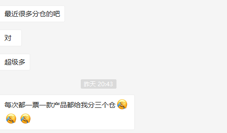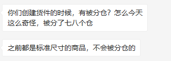 无独有偶,在卖方通卖家交流群中,也有众多卖家反映,最近FBA分仓严重,每次同一款产品都要被分七八个仓,而在此之之前,标准尺寸的商品,是不会被分仓的。