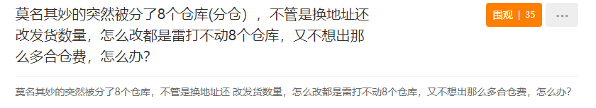 近日,有卖家在论坛求助:莫名其妙的突然被分了8个仓库,不管是换地址还是改发货数量,怎么改都是雷打不动8个仓库,又不想出那么多合仓费,怎么办?
