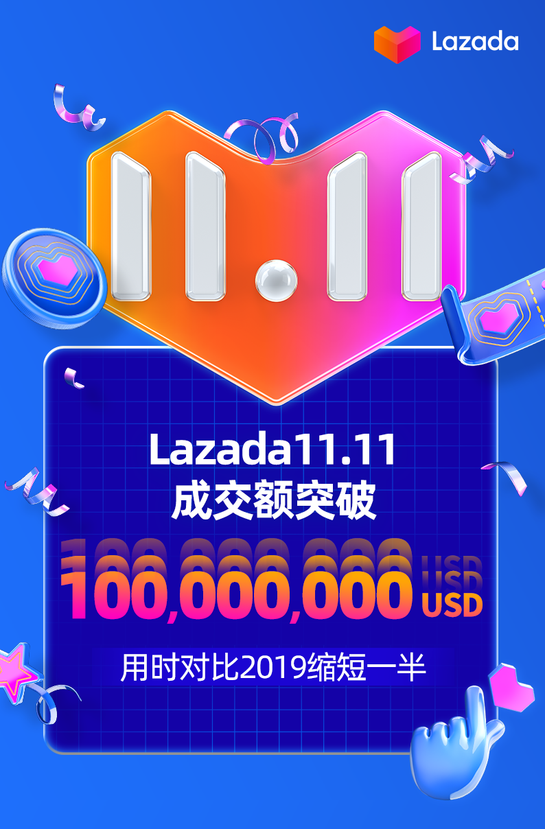 11月11日,Lazada平台发布战报显示,Lazada双11成交额迅速突破100,000,000美元,所用时间相比去年缩短一半以上,LazMall不到半天超去年全天成交额。首单2分钟出库,提前安排近200架次包机服务,跨境商家同比去年实现了更大的业绩突破。