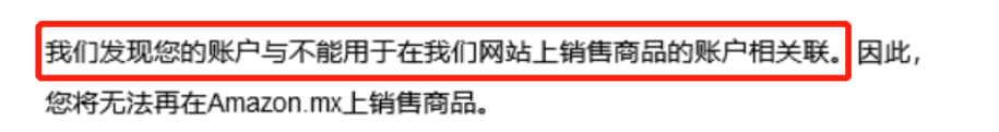 除了违反了亚马逊第3条,卖家收到的关联邮件中表示卖家账户与不能用于在亚马逊网站上销售商品的账户相关联。