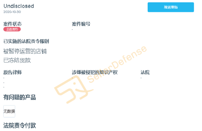 据了解,共有53个Wish账号被起诉。Wish后台TRO界面显示:店铺已经被暂停运营,并且还有冻结的罚款。