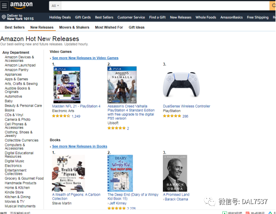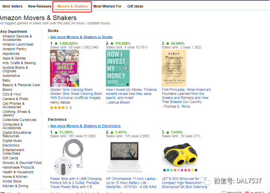 2:了解新品热卖的排行榜:亚马逊会对上架三个月的热销产品进行排名,每小时有一次更新,通过这个可以了解新近上架的热销产品。
