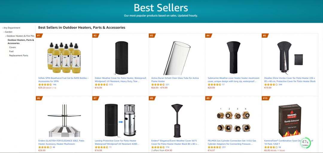 由此可见,哪怕是新冠确诊人数在不断增加,美国人对户外设备的需求仍然非常旺盛,在这一众畅销的户外取暖产品中,露台加热器更是脱颖而出,成为大部分美国人的最爱。亚马逊现在最畅销的取暖产品是22英寸的火炕和丙烷加热器,包括加热器的天气罩、各种零件都成为了热门产品。