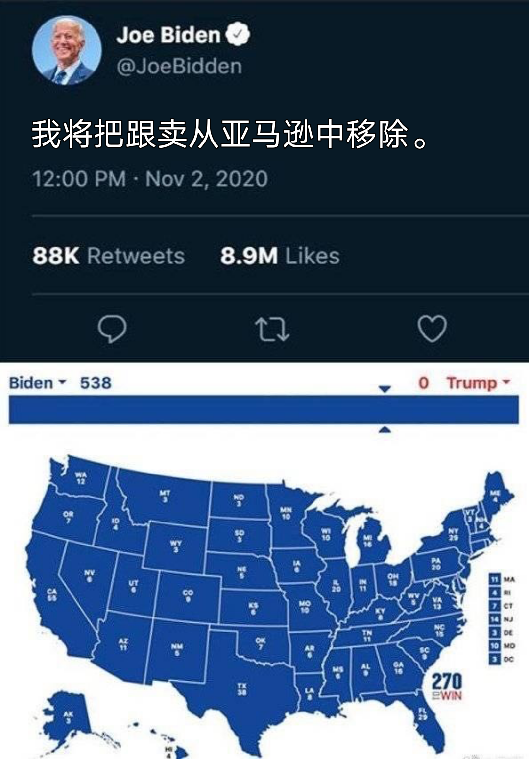 而据了解,拜登能以压倒性优势当选,原因是拜登此前表示:我将把跟卖从亚马逊中移除(皮一下别当真