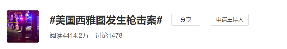 话题#美国西雅图发生枪击案#也一度登上热搜。