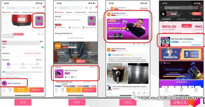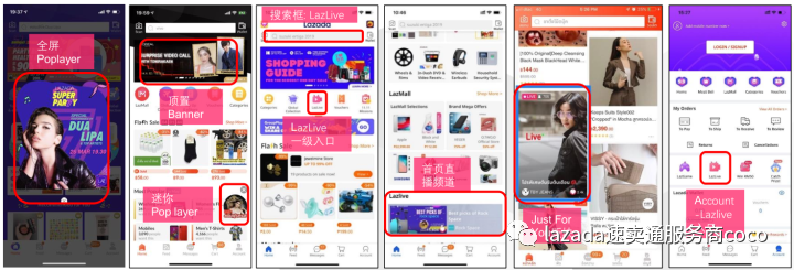 Lazada APP 直播入口一览(公域)入口可能更新,以实际为准,直播 仅在APP端