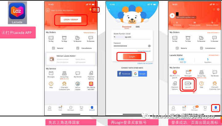 1. 至少提前10分钟打开Lazada APP并登陆,打开LazLive,准备开始