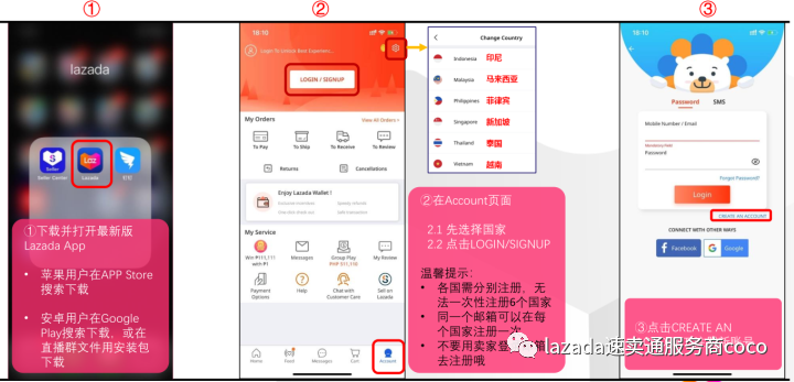 (各国分别 注册,APP 或 电脑端都可注册,选择其一即可)