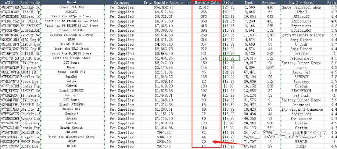 如果一款产品所有产品显示的销量都很高,那我们做也是有些困难的,我们不用看最多的,看居中的,想我箭头标的产品,一个月卖30个在bestseller里排名就在31了,相当于一天卖一件就可以排到小类目的30名了.