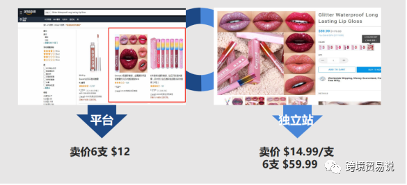 下面是产品进价的基础上,独立站售价与平台售价的对比: