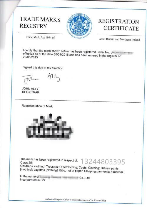 6.获得证书:商标被核准注册后,申请人将获得英国专利商标局下发的注册证书。