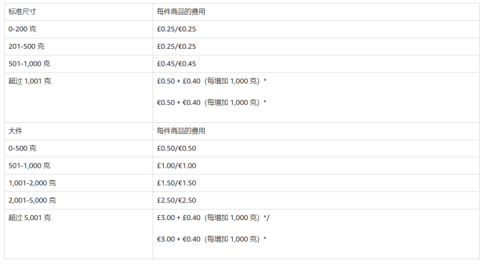 *英国/欧盟:每件商品费用【基于尺寸和重量】