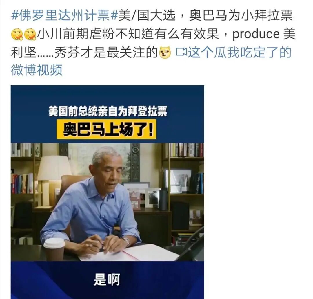 据悉,美国前总统奥巴马直接为拜登拉票。