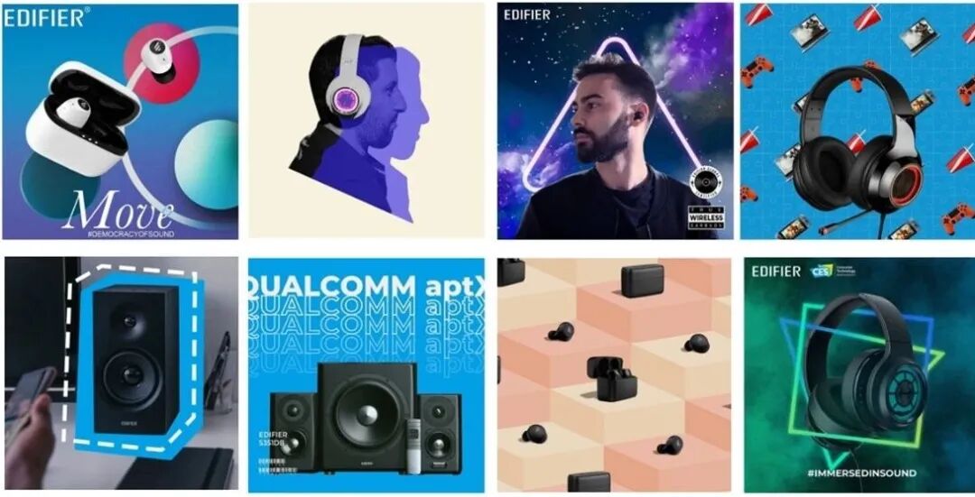 漫步者(Edifier)在中国已有20多年的历史,是一个非常成功的音响品牌,在产品方面也是精益求精,在国内音响市场有着举足轻重的分量。除了国内,漫步者也在不断探索海外市场,在全球的范围内树立其品牌知名度。① 创建一个全新的面对全球的Facebook主页,提高漫步者耳机系列的国际认知度。② 创建具有创意的视觉内容,吸引社交媒体的追随者,保持追随者的高度参与度,为漫步者网站和亚马逊美国店带去流量。因此,我们需要从头开始构建漫步者的Facebook主页,创建Facebook营销活动来吸引粉丝,用本地化的内容来传播漫步者的品牌信息,让品牌与受众接触,确保粉丝能真正的参与其中。竞争大:漫步者的海外耳机市场有许多竞争对手,其中大多数的西方耳机品牌都拥有更加成熟发达的本地化社交媒体建设。起点低:项目启动时,漫步者的Facebook和Instagram主页的关注者较少,覆盖率和参与度也很少(内容是一方面,平台的自然覆盖率下降也是原因之一)。目标复杂:漫步者的目标市场包括发达国家和发展中国家,所以在营销时需要根据千差万别的千次曝光出价来平衡付费媒体的预算。缺乏本地化优势:虽然漫步者在国内享有盛誉,但是对于国际用户来说比较陌生,用户更愿意信任参与本地化内容。由于是建设全新的Facebook主页,需要从零开始发展培养品牌粉丝,还要保证粉丝较高的参与度。所以我们进行了准确的定位,确保我们不会把时间和预算浪费在一个不匹配的用户身上。我们对不同的广告创意进行了严格的分割测试,测试细分受众群和广告展示位置,保证了在有效范围内客户的最大可见度。我们利用行为定位来获取新的潜在用户,使用地理位置广告定位,兴趣定位和相似受众定位。在充分利用广告预算的同时最大限度的提高了品牌的曝光度。有效地管理付费媒体预算对于漫步者在关键市场中获得知名度至关重要。众所周知,Facebook,Instagram和Twitter都是成熟的平台,这也就意味着平台的有机影响力将会不可避免地降低。话虽如此,我们仍然可以对预算进行管理,制定可靠的付费媒体策略。要知道,即使像美国这样的高成本,高竞争的市场中,这些平台上的CPM仍然非常实惠。从经验来说,合理的使用广告能让更多的受众群体看到我们所制作的精彩内容,这会带来很棒的效果——Facebook和Instagram平台平均参与度的3-6倍。不需要大量的预算,就可以获得远远超过平台参与度的结果。在2019年,我们每月为漫步者实施一个不同的图形主题,以产生更好的体验。使Facebook上的参与率提高了73%,Instagram上提高了323%。我们还以自己的内容主题开展了一些季节性活动,以激活受众:Somos接管漫步者全新的Facebook全球账号后,3个月内添加了70000+精准粉丝。其中一项营销活动使网站流量增加了125%以上,且跳出率低于平均水平。合作三年,Facebook主页的关注者从0增加到258639。Facebook和Instagram上的参与率分别达到17%和6%。