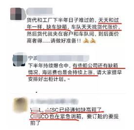 这次缺箱潮使货代和货主们面临着巨大的压力,快速上扬的货运费用使得成本激增,发不出去的货又导致库存压力增加,更重要的是信誉的流失。货代搞不到箱子、卖家发不出去货,买家收不到货,形成了恶性循环。
