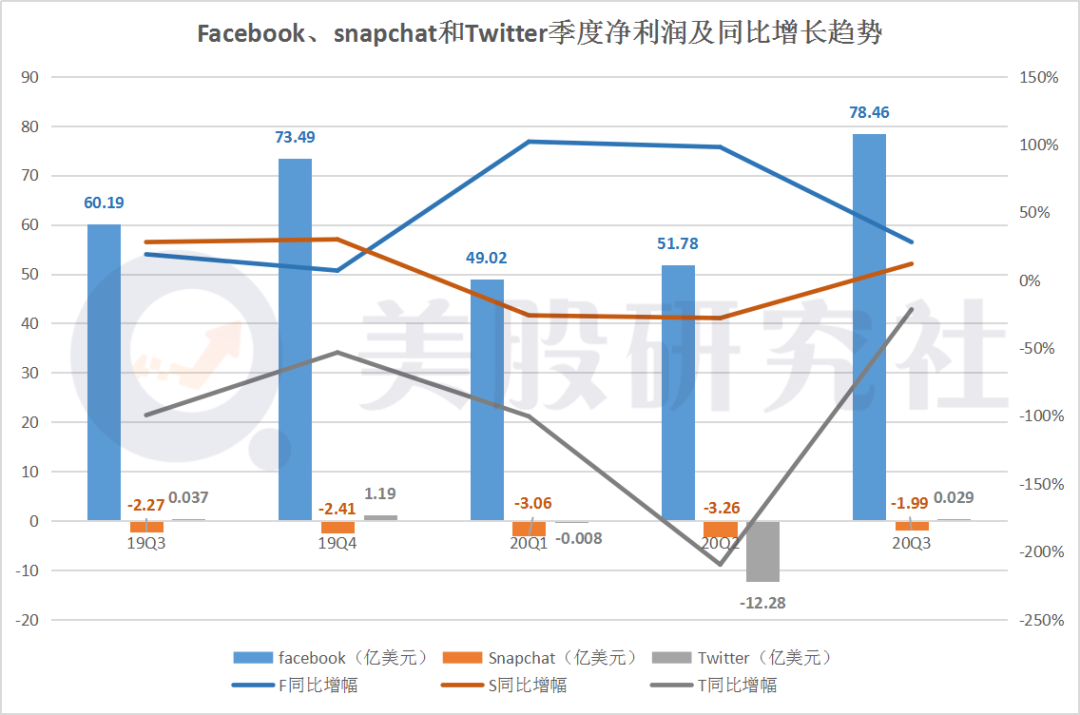 但为何Facebook在北美地区用户数量下滑?在美股研究社看来或许是因为该部分用户被推特或者Snap抢占,毕竟在宅家期间这2个社交巨头也加大营销宣传之类,一定程度上也是有可能瓜分这部分用户。