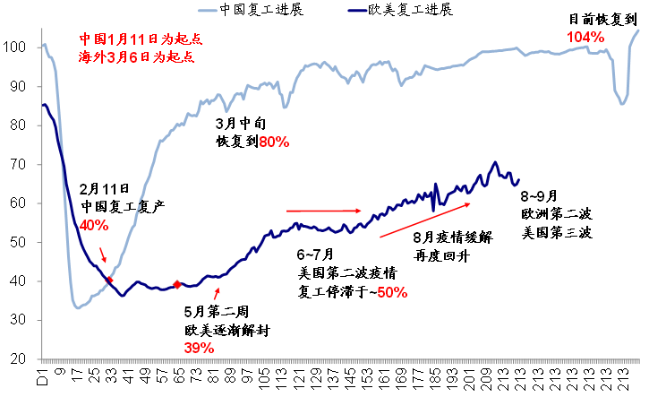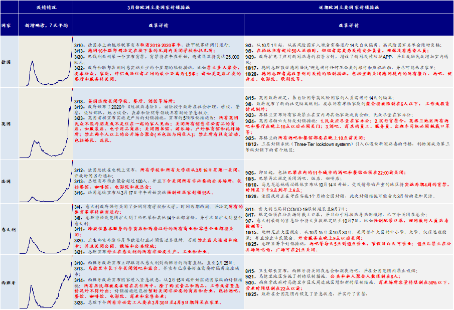 iii.疫情升级的直接后果是,将再度阶段性放慢复工节奏拖累部分需求。为了应对疫情的不断升级和扩散,欧洲主要国家都重新采取了一定的封闭措施,这一点从近期如出行和就餐等高频指标都能够得到体现,因此的确会对复工和需求产生一定拖累。