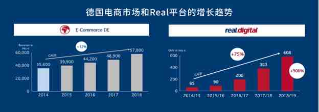德国电商市场持续扩张,年增长率达到12%。Real.de是德国电商市场中,销量突破最快的平台,年增长率超过德国电商市场的6倍,截止2019年,销售年增长率达到75%。随着实体店和数字购物之间的界限逐渐模糊,越来越多德国的消费者在多渠道进行购物,并通过对比,逐渐开始选择网上购物。因此Real.de等电商平台,将会吸引更多新用户,加入网购剁手党。