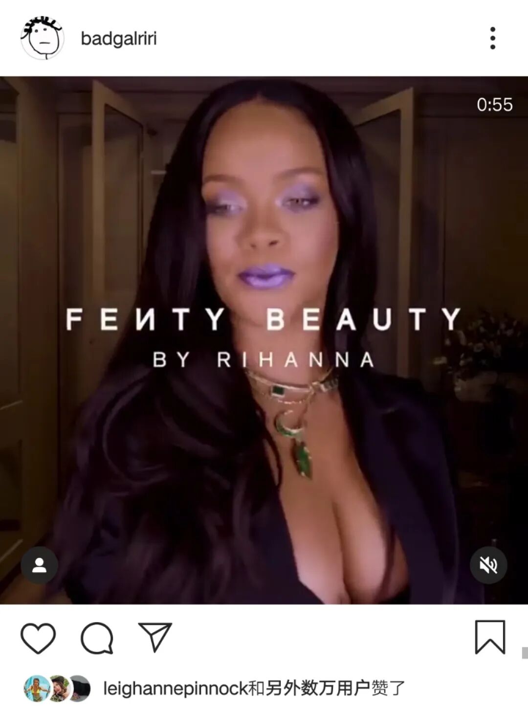 社交媒体是Fenty Beauty的营销主战场,包括蕾哈娜自己的私人Instagram账号都变成了她的营销平台,8763万粉丝的号召力不是吹的。
