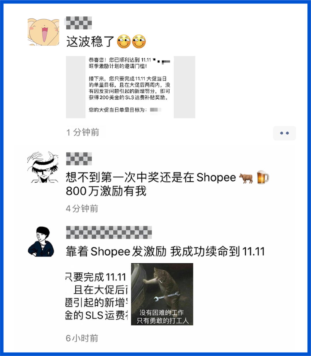 在干嘛,还不来“薅Shopee的羊毛”?Shopee卖家大会旺季激励计划(总价值800万人民币激励基金)第一阶段“已开奖”,你收到了吗!不少卖家发来“中奖”截图,并在朋友圈分享喜悦呢~