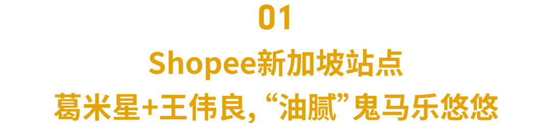 Shopee新加坡站点邀请当地家喻户晓的喜剧演员葛米星(Gurmit Ottawan Singh)和超卖座系列电影《新兵正传》(Ah Boys to Men)的演员王伟良(Wang Weiliang)为11.11大促拍摄宣传片。葛米星打扮成《鬼马家族》的经典形象潘厝港闪亮登场,“狂拽酷炫爆炸头+大金链子大金表”,无敌魅力震慑全场。王伟良穿着Shopee品牌橙卫衣,和葛米星一起随着神曲摇摆。两人“油腻”中带有一丝可爱,可爱中又带有一丝帅气,保你3秒就能被洗脑!