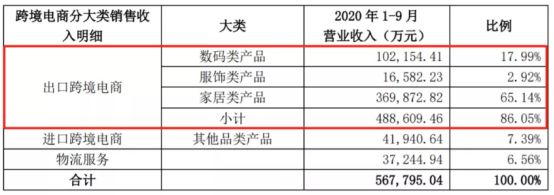 此外,华鼎股份也详细说明了出口跨境电商版块中各类产品的销售情况,其中数码类产品1-9月营收10.22亿,占比17.99%、服饰类产品营收1.66亿,占比2.92%、家居类产品营收36.99亿,占比65.14%。