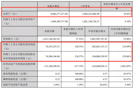 近日,星徽精密发布了第三季度报。报告显示,截至今年九月底,星徽精密总资产突破40亿,较上年度末增长近20%。在第三季度,星徽精密实现营收14.1亿,较去年同期增长57.52%,归属于上市公司股东的净利润超7600万,同比增长120.55%。