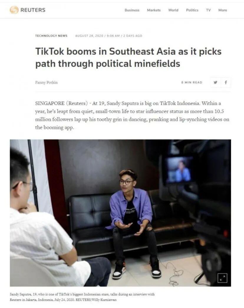 根据上个月路透社提供的数据,在人口总数超过6.3亿的东南亚地区,TikTok的下载量高达3.6亿,一半下载量来自30岁以下用户。