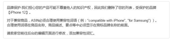 对此,有卖家猜测兼容词有无并不是关键点,虽然亚马逊官方邮件是这样提醒卖家的:”对于兼容产品,ASIN必须合理使用兼容性词语(例“compatible with iPhone”),请卖家修改,添加兼容性词汇。”