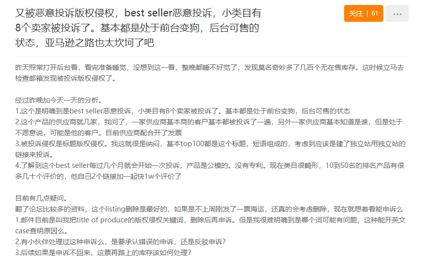 原本指望这些辛苦打造的listing能拉高全年业绩,如今全泡汤了,亚马逊之路也太坎坷了吧。