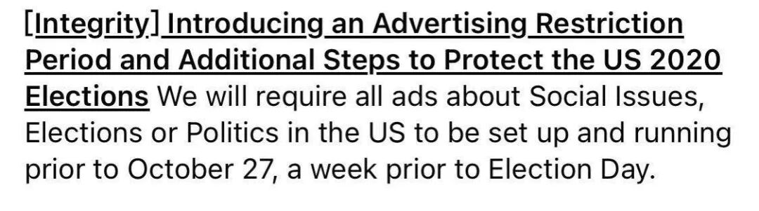 主要内容:收到美国大选影响,美国地区政治类和社会类广告,无法调整和更改广告设置,包括创意素材,版位等。