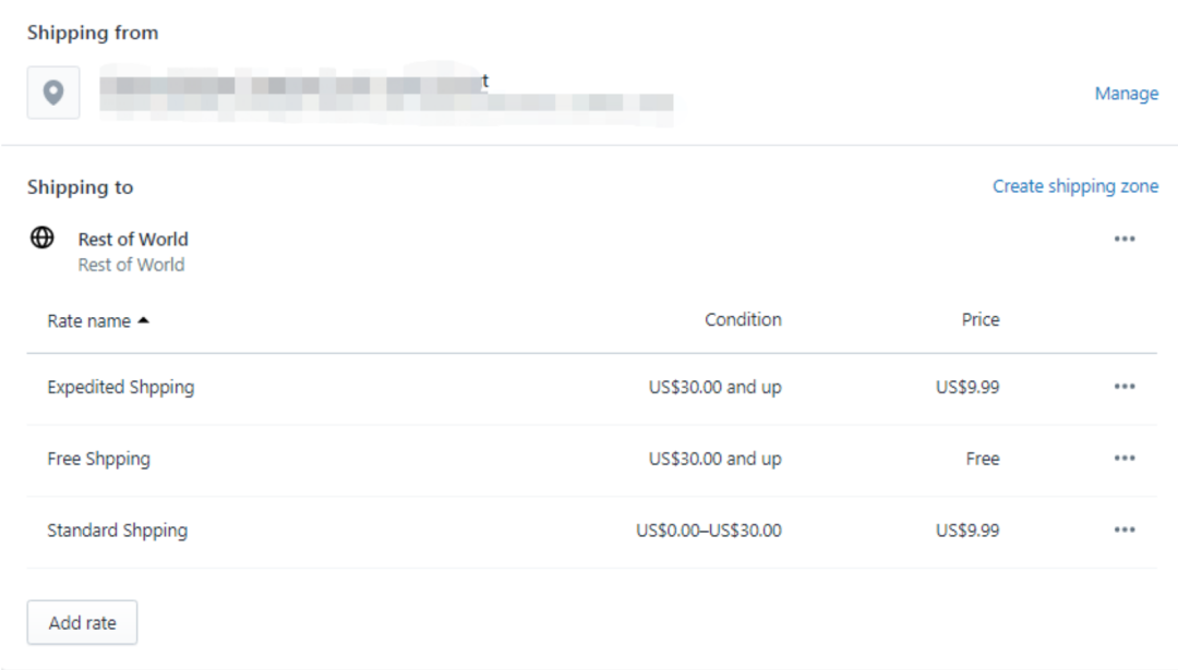 Shipping to-运费设置:可以根据不同的国家区域设置不同的运费(美国、加拿大运费价格设置区别)也可以根据不同的价格设置不同的运费(比如50刀以上运费是多少,50刀以下运费是多少),可以根据实际情况来进行调整。如果店铺是免运费的话,那就只需要设置一个所有国家全部免运费就可以了。上图根据价格设置了运费,大家可以作为一个参考。