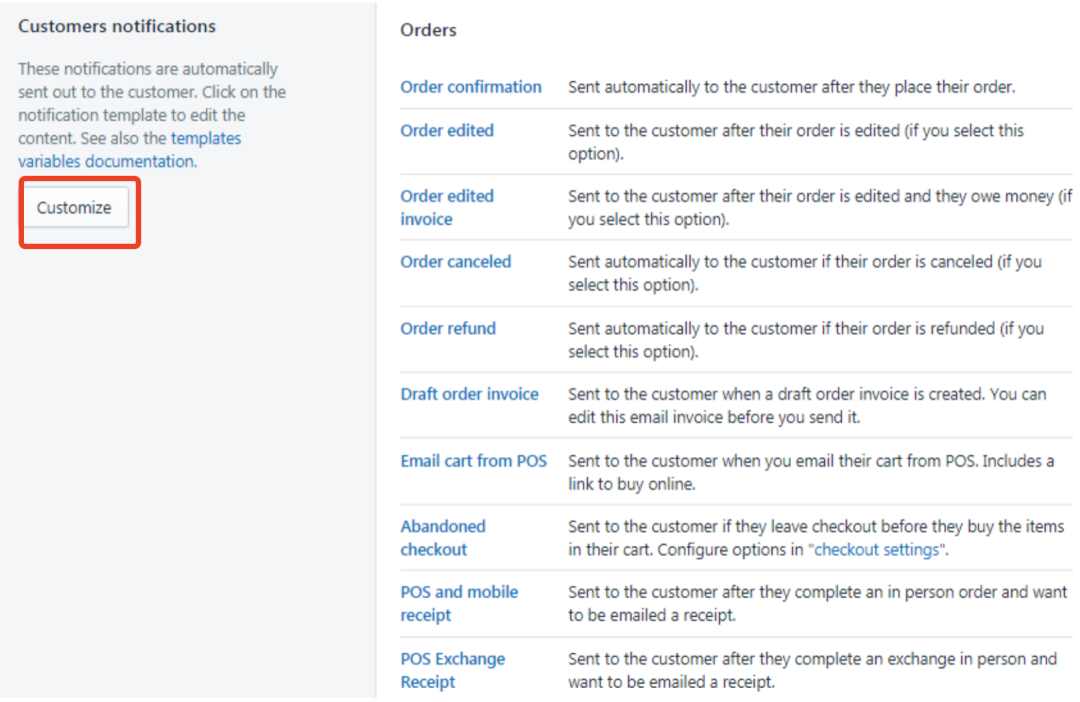Shopify会提供订单状态,发货状态的模板信息,当某个流程完成时系统会自动发送给客户
