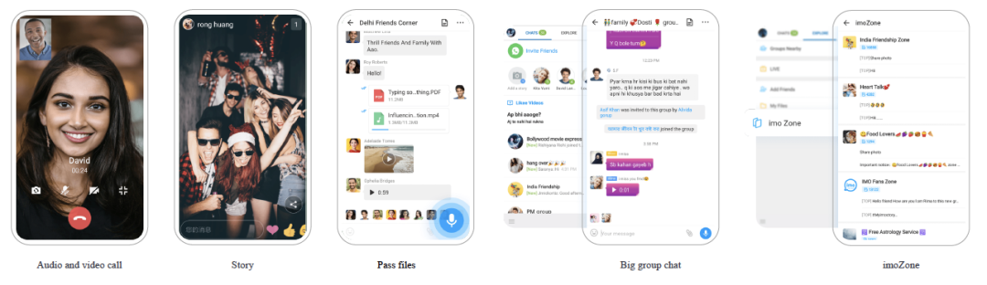imo是⼀个全球视频通讯社交平台。在这⾥,⽤户们既能在imo上⾃由的发消息和打电话,⼜能分享他们⽣活的瞬间 。