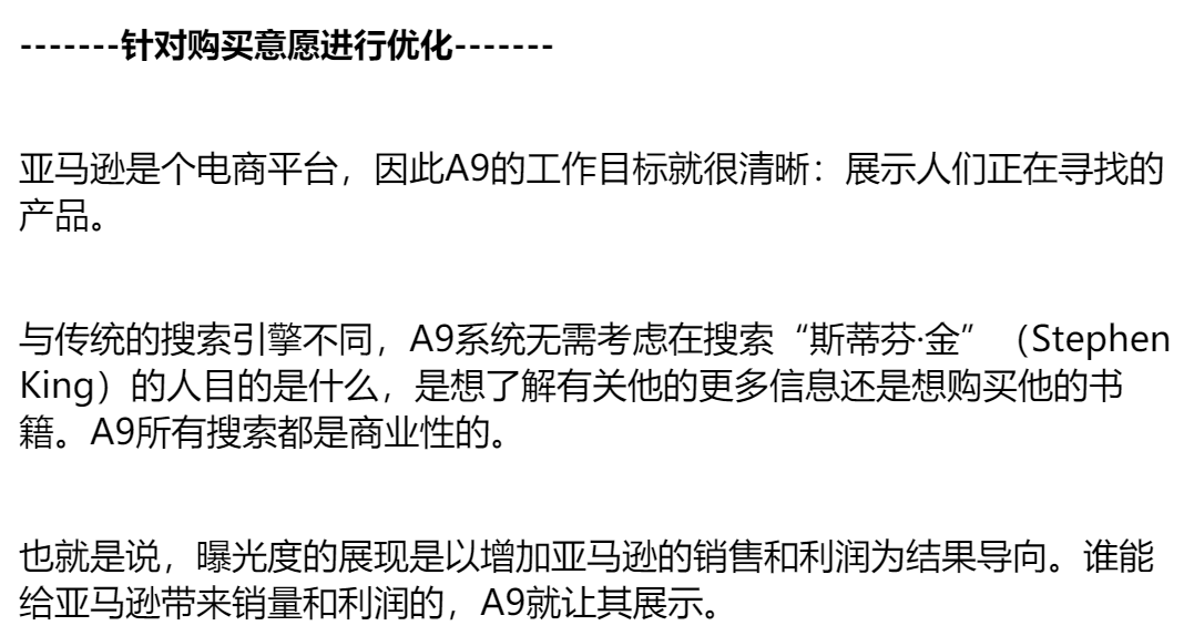 关于A9算法,要记住的,最重要的事情,是A9算法与传统搜索引擎的不同之处在于,它的存在是为了只为了一件事情:销售。