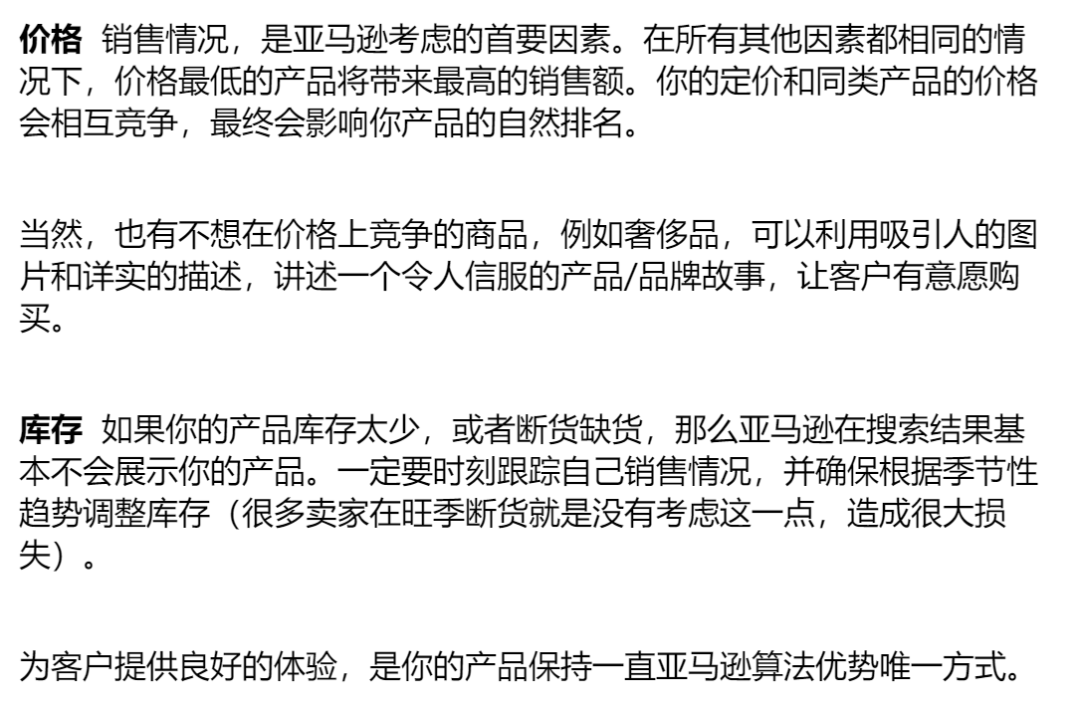 A9会抓取你产品的标题和描述,以确定相关性(relevance),确认产品的价格,确保快速的配送方式,足够的库存,最后评估该产品销售速度,最终能为亚马逊赚多少钱。