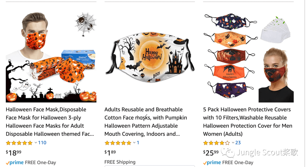 一个以小丑和头骨为主题的口罩混合装Listing本月的销售额达到了110,714美元。