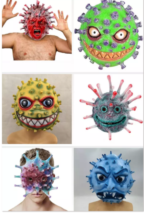 这是一款以冠状病毒为主题的万圣节笑脸面具,在亚马逊上的名称为“ Corona Halloween Mask”和“ Corona Latex Horror Mask”,这些面具售价为14.59英镑(16.50€),有鲜绿色或红色的不同款式。外媒表示,出售这款面具的卖家注册地址正是中国广东省。