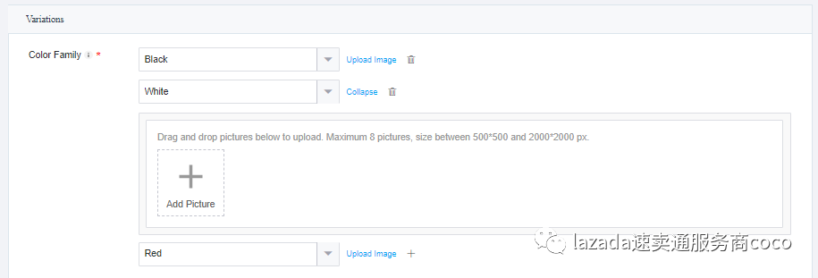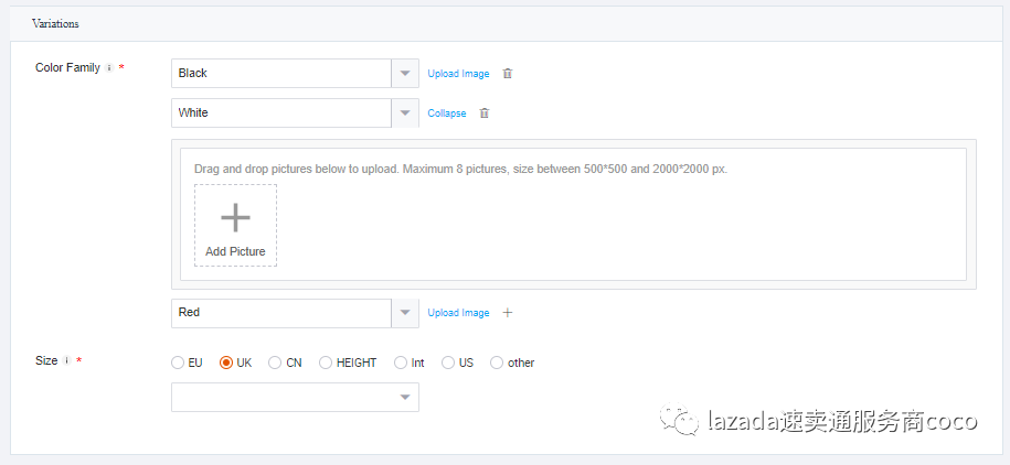 • 卖家可以先批量上传产品内容(不包含图片), 然后在卖家中心手动添加图片