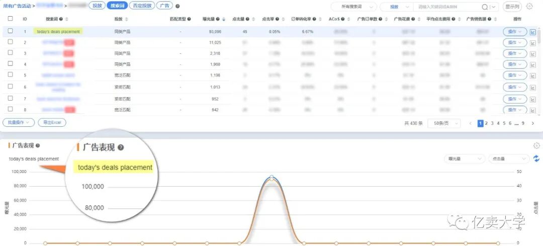 某一天,一位客户找到小亿诉苦:秒杀期间没关广告,心里小算盘打得啪啪响,想着秒杀活动加上广告,流量岂不更上一层楼,还能得到更多客户搜索数据,多花点广告费又何妨呢。 结果令人错愕,秒杀期间流量是增加了,广告数据却像是一场亚马逊的"恶作剧":约80%以上的广告预算都被一个无关词语消耗掉了——today's deals placement,除此再无更多有用信息。